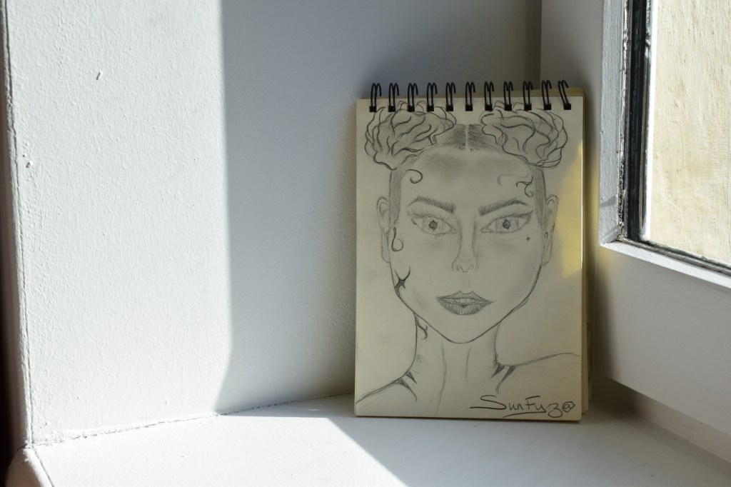Premier dessin de ce lot, A.L.I.E.N représente cette être aux traits atypiques. Avec ces yeux immenses et sa forme du visage prononcée la démarque des autres, tel un « Alien ».